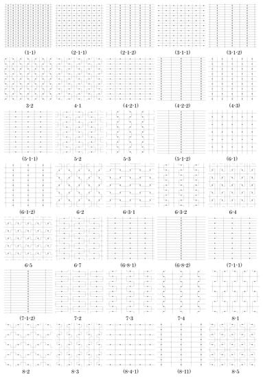 - Schattschneider, D. The plane symmetry groups: their recognition and notation. Am. Math. Mon. 1978, 85, 439–450. [Google Scholar] [CrossRef]