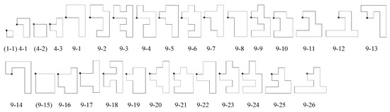 - If is true, an n-omino tile is completed and add T to provided there is no equivalent tile in . We regard two n-ominoes equivalent if conditions (a) and (b) below are satisfied.