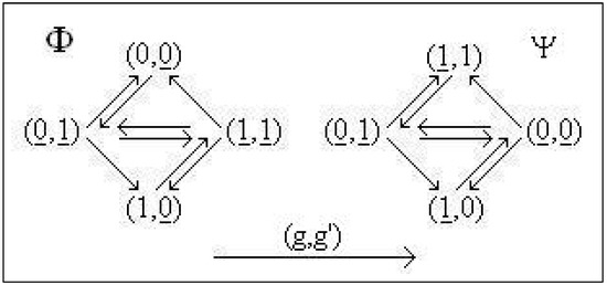 We consider the functions If bijective exist such that one of the equivalent properties (a), (b) or (c) from Theorem 17 is satisfied, then we say that the couple defines an isomorphism from to or from to or from Φ to We use the notation for the set of these couples and we also denote with the set of the automorphisms of or