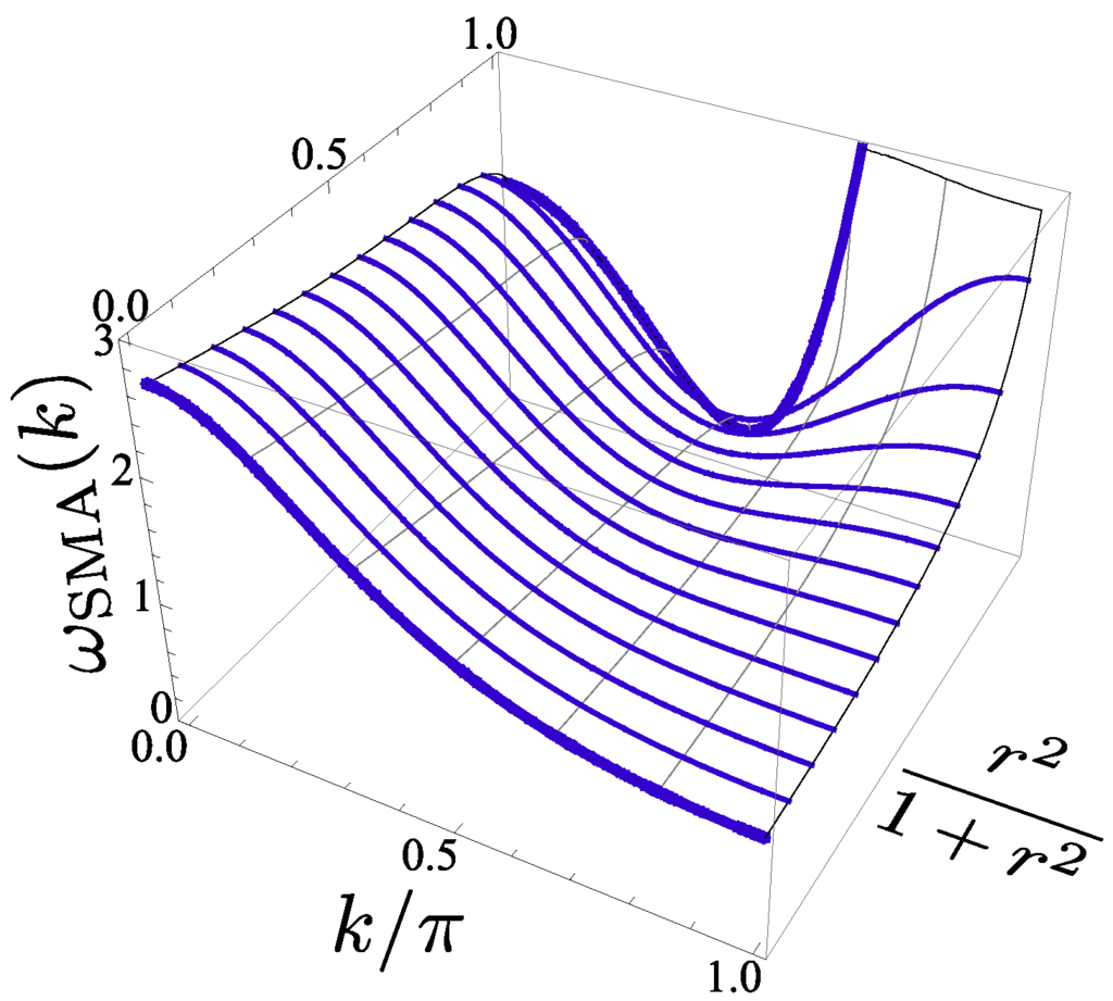 - Penc, K.; Shiba, H. Propagating S = 1/2 particles in S = 1 Haldane-gap systems. Phys. Rev. B 1995, 52, R715–R718. [Google Scholar] [CrossRef]