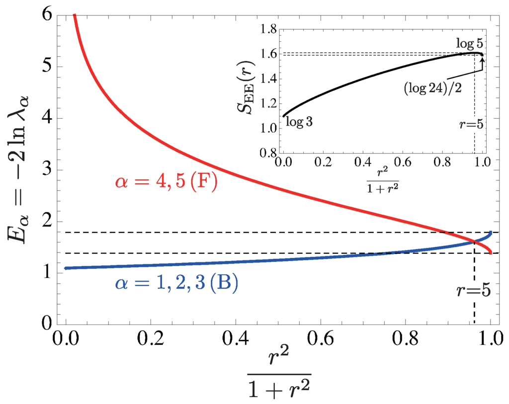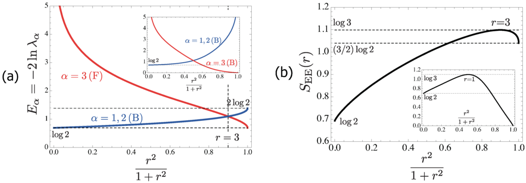 - Santos, R.A.; Paraan, F.N.C.; Korepin, V.E.; Klu¨mper, A. Entanglement spectra of q-deformed higher spin VBS states. J. Phys. A Math. Theor. 2012, 45, 175303:1–175303:14. [Google Scholar] [CrossRef]