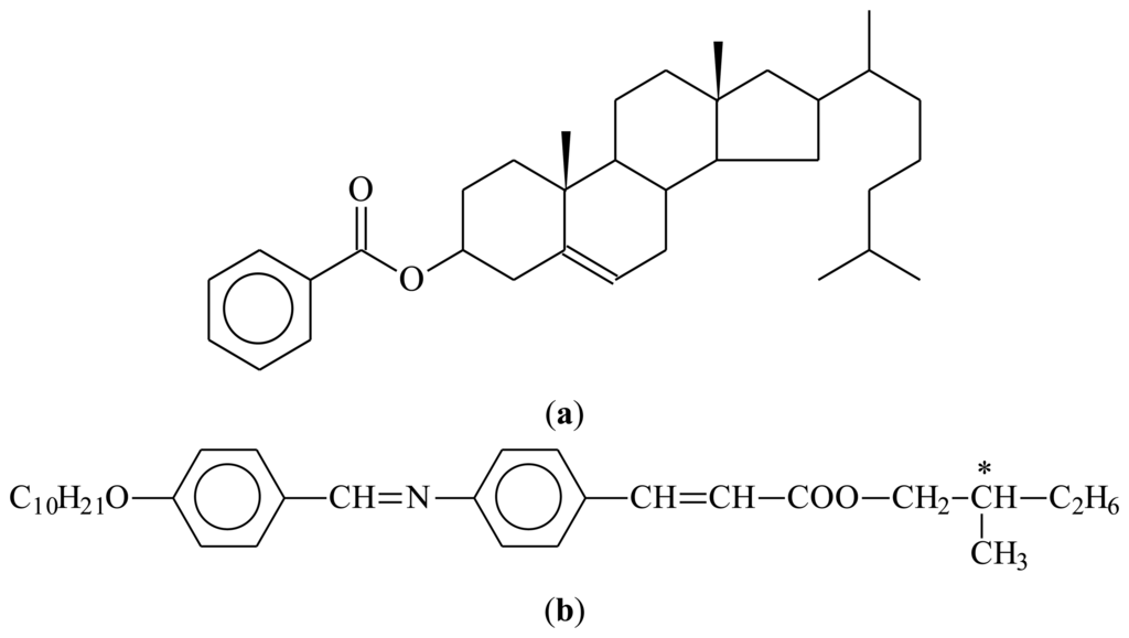 - Dierking, I.; Giesselmann, F.; Zugenmaier, P.; Mohr, K.; Zaschke, H.; Kuczynski, W. New diastereomeric compound with cholesteric twist inversion. Liq. Cryst. 1995, 18, 443–449. [Google Scholar]