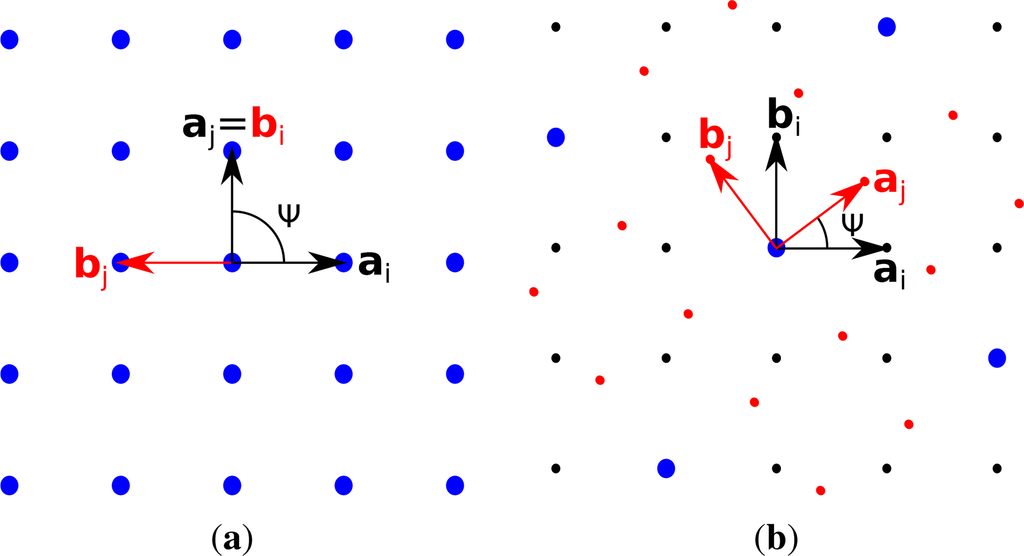 In Appendix 1.1, lattice restrictions of the forms of Equations (A12) and (A18) were derived from σ-POs relating equivalent lattices. In this section, it will be shown which forms the vectors in Equations (A12) and (A18) can take, so that solutions with positive-definite tensors Gi exist, i.e., lattices (ai, bi) fulfilling , and:
