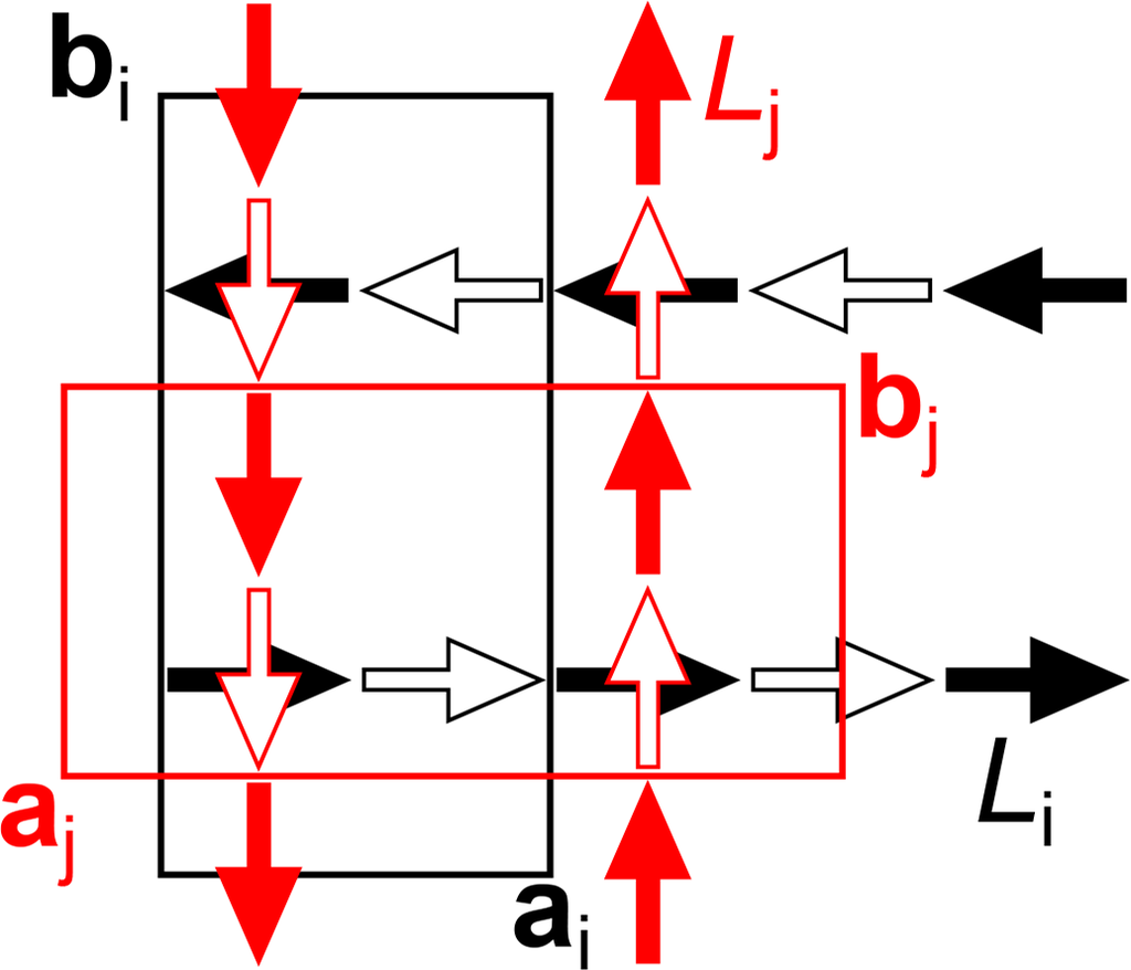 Layers Li and Lj are of the same kind, with lattices spanned by (ai, bi) and (aj, bj). The lattices are related by: