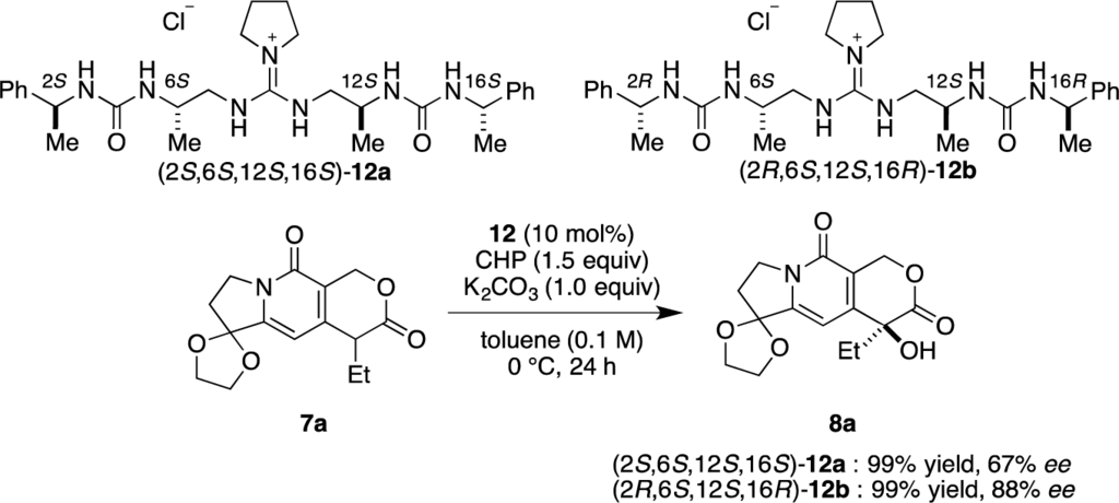 Indeed, (2S,6S,12S,16S)-12a gave the α-hydroxylation product with moderate enantioselectivity (67% ee), while (2R,6S,12S,16R)-12b gave 88% ee with 99% yield (Scheme 2).
