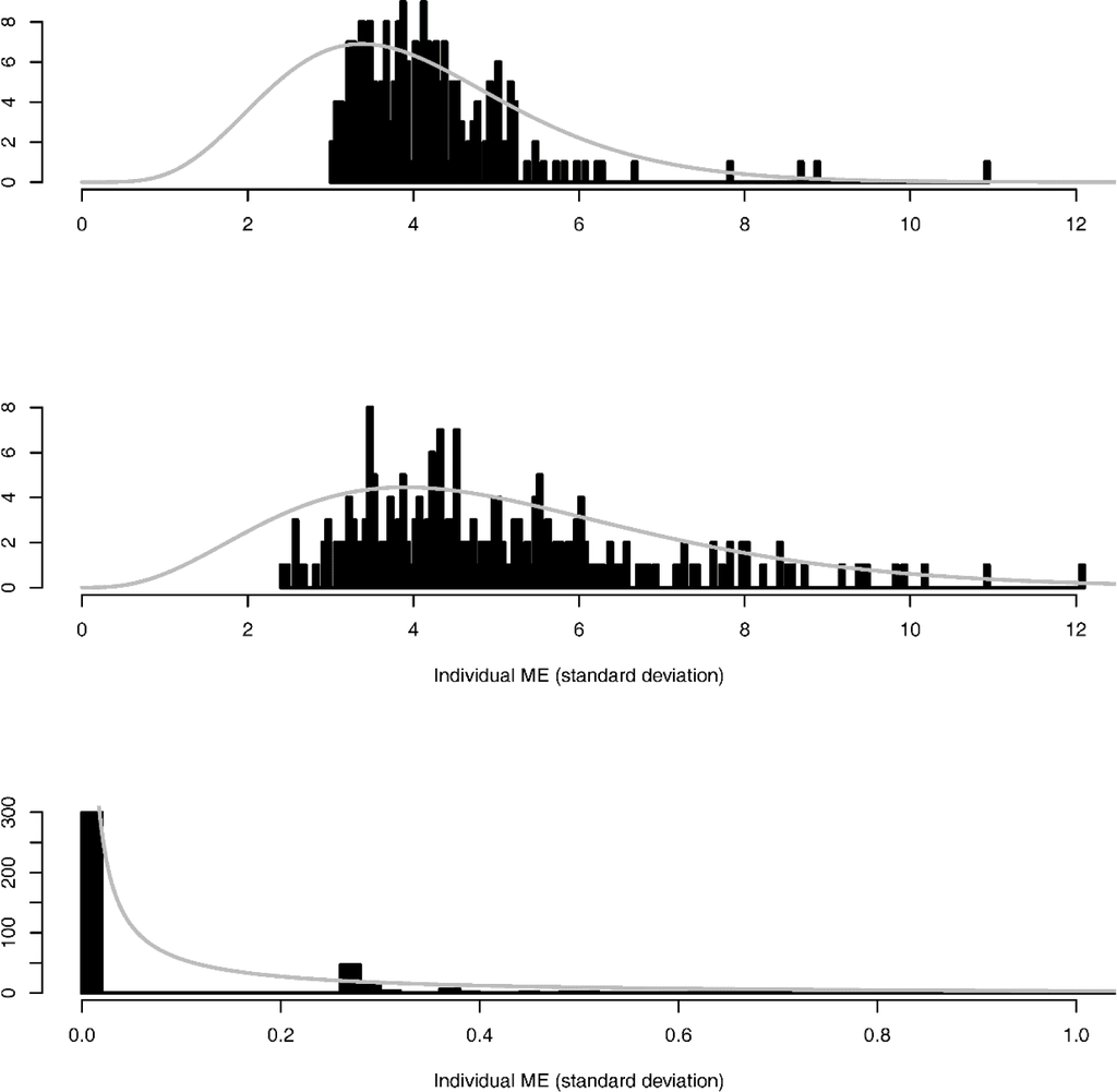 In the same way as for between-individual variation in DI, between-individual variation in ME was assumed to follow a gamma distribution at the level of the standard deviation with shape and rate parameters indicated as α2 and β2: