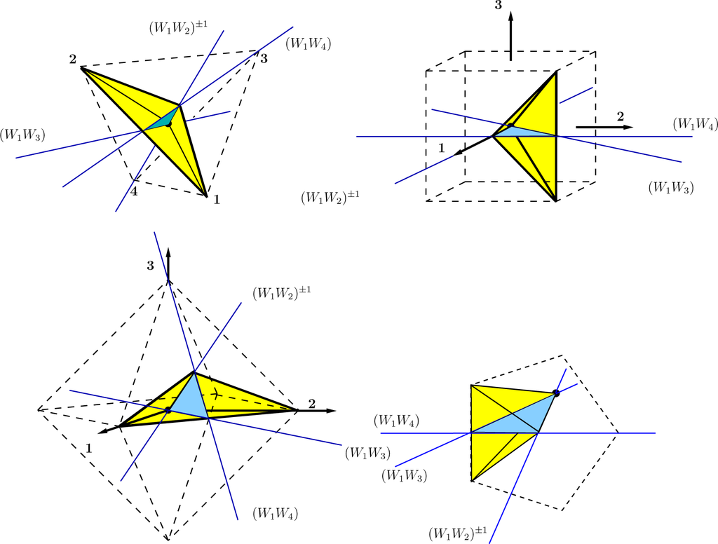A spherical Coxeter group possesses a fundamental domain. On E4, this is a simplex bounded by the four Weyl reflection planes from the generators of Γ. For the Platonic manifolds, duplex pairs of them are shown in Figure 1.