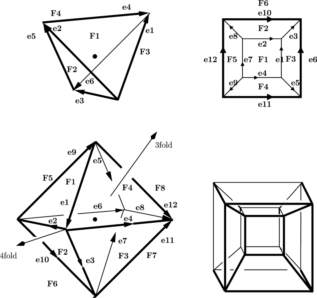 For the homotopy of N2, we make full use of the prescriptions of Table 3. Any quadratic face of the proto-cube is surrounded by four directed edges given in Figure 2. These four directed edges in turn determine the face and, moreover, give its orientation with respect to a four-fold axis perpendicular to the face.
