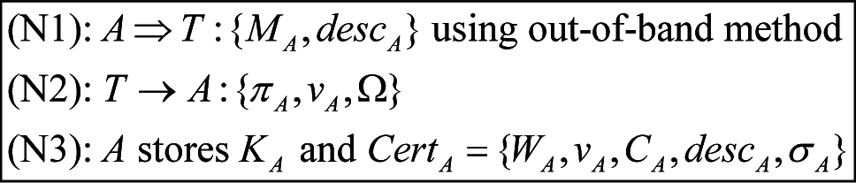 H(.) and G(.): The collision-resistance one-way hash functions [36], where H:{0, 1}*→{0, 1}β and G:{0,1}*→{0,1}(3/2)β.