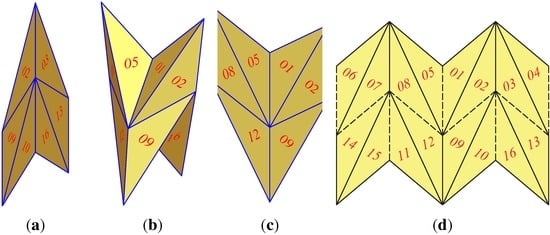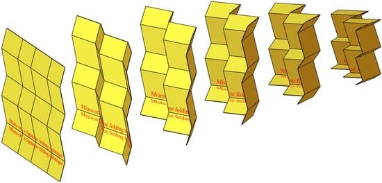 - Barej, M.; Hoffmann, S.; Knief, Ch.; Trautz, M.; Corves, B. Design and Application Studies for a Cupola Forming Orbital Arrangment of Miura-Ori Basic Units. J. Geom. Graph. 2015, 19. in press. [Google Scholar]