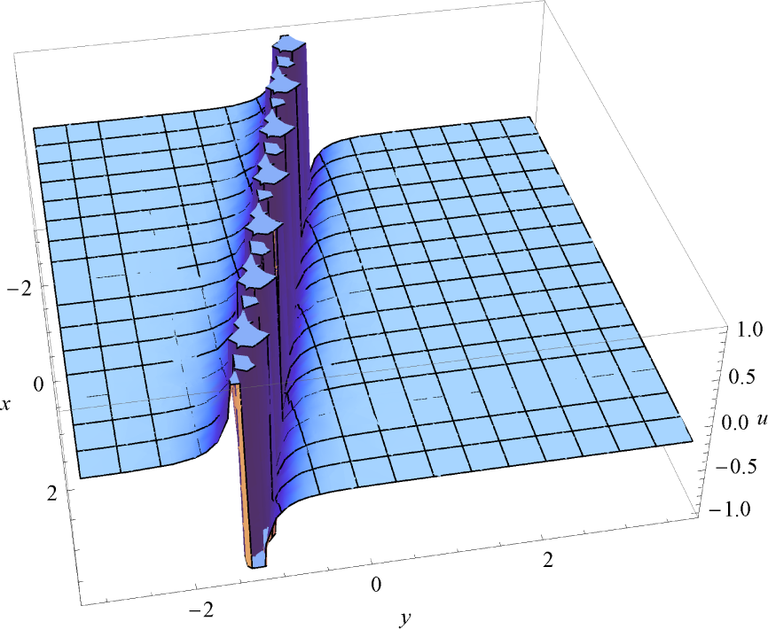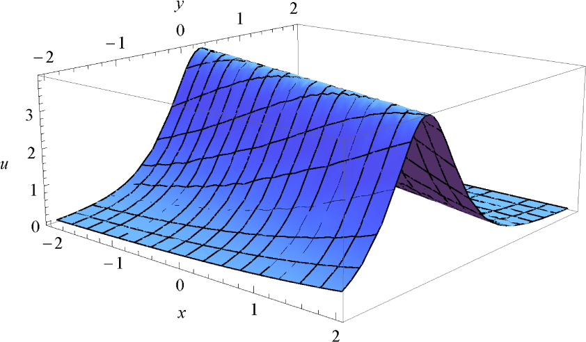 Note that (11) represents a non-topological soliton solution. A sketch of the solution (11) with n = 2, α = 2, k = 5, ν = 1, β = 1, t = 0 and C1 = 1 is given in Figure 1.