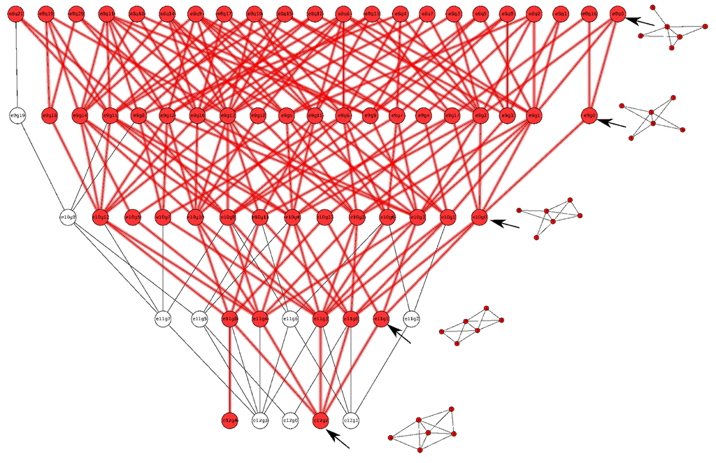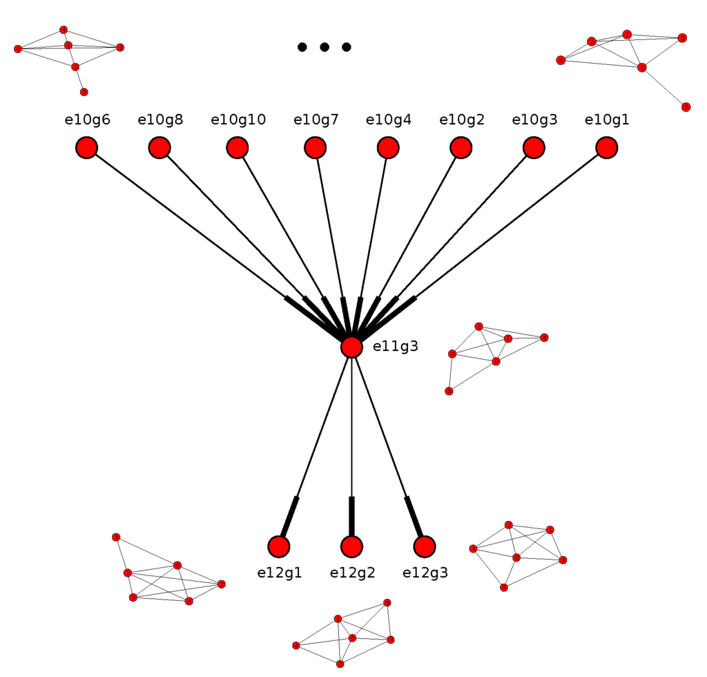 For larger, microscale assemblies, a direct study of the free energy and configurational entropy is computationally emphatically intractable. At these coarser scales, the primitives are stable subassemblies and transition rates (obtained from the computational tasks of the previous two subsections). Still, the combinatorial entropy of multiple pathways makes it difficult to isolate crucial combinations of assembly-driving interface interactions.