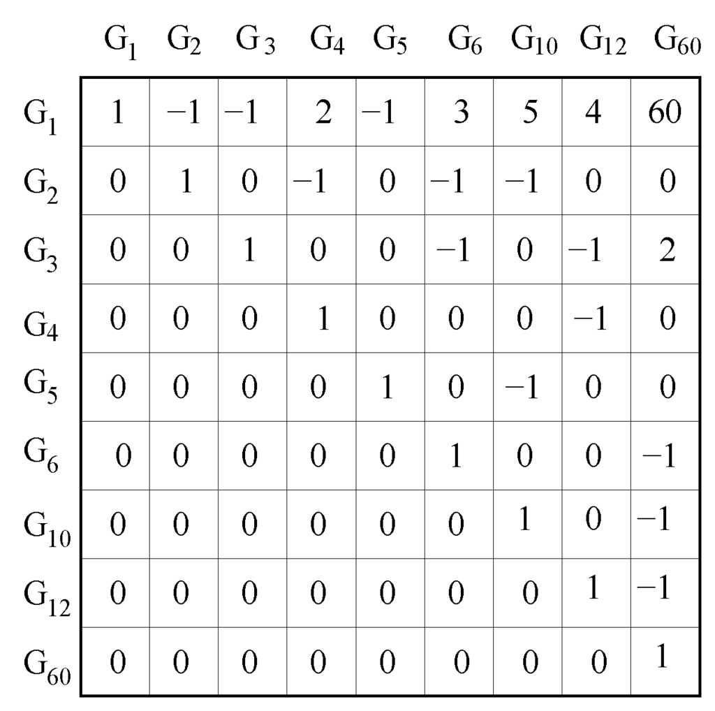 Figure 3 shows another example of four assembly configurations each containing two bunches. The strict congruence group of the assembly configuration is of size two and contains those tuples , where , , . The weak automorphism group of the assembly system is of size four and contains those tuples , where , , . All four strictly isomorphic assembly configurations are obtained by applying to the assembly configuration . Notice that and ( and ) are strictly congruent, while and are strictly order-preserving isomorphic. The orbit of under is of size two and consists of and .