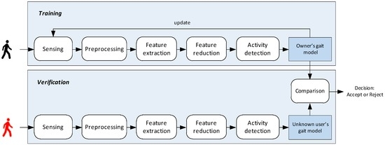 - Lu, H.; Huang, J.; Saha, T.; Nachman, L. Unobtrusive gait verification for mobile phones. In Proceedings of the 2014 ACM International Symposium on Wearable Computers, Seattle, WA, USA, 13–17 September 2014; pp. 91–98.