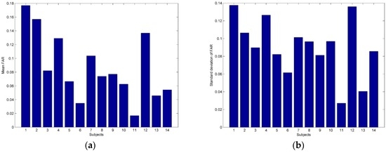 | Bachlin et al. [15] | FFT coefficients | FFT, one-way Analysis of Variance (ANOVA) | 5 | 2.8%–21.3% (EER) |