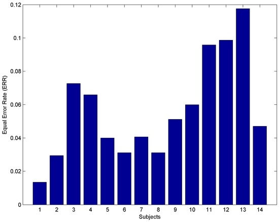 | Nickel et al. [18] | Mel- and Bark-frequency cepstral coefficients (MFCC, BFCC) | SVM classifier | 48 | 5.9% (FMR); 6.3% (FNMR) |