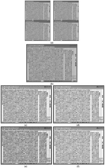 - Kumar, V.; Bansal, A.; Tulsiyan, G.H.; Mishra, A.; Namboodiri, A. Sparse document image coding for restoration. In Proceedings of the 12th International Conference on Document Analysis and Recognition (ICDAR), Washington, DC, USA, 25–28 August 2013; pp. 713–717.