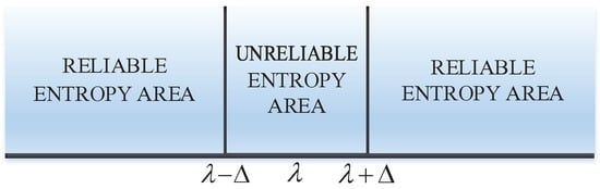 In the proposed CSS scheme, the local estimated entropy results in information made by each secondary user being classified into two types, as shown in Figure 2. When estimated entropy satisfies or (Δ is any positive real number, λ is decision threshold), we define this area as reliable information entropy area; otherwise, when entropy is in , the area is defined as an unreliable information entropy area. The OR rule is adopted to fuse reliable information entropy, if there is at least one decision result of cognitive user being one, then the fusion result of this region is one. The AND rule is used to merge under-reliable information entropy together, if and only if all decisions of SUs are one, and the final fusion result in the area is one.