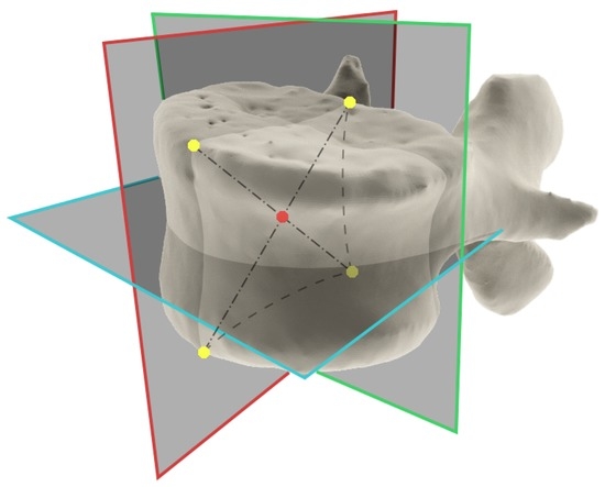 3.3. Procedure for Obtaining Location of the Vertebral Body Central Point from CT Scans