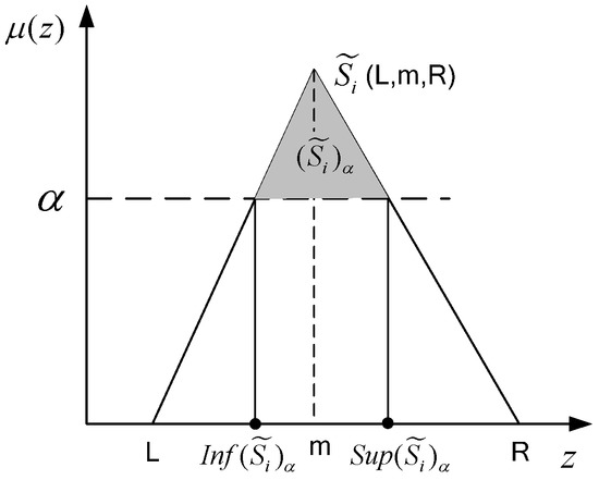 Step 3: Prepare the plotted data. A sample size of 5 was taken randomly and the scoring triangular fuzzy numbers were , , , , and . According to Formulas (6), (7), (11), and (12), we obtain the results shown in Table 1.