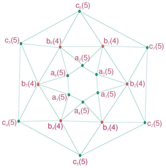 Here, we also are concerned with calculating the average eccentricity for the graph of convex polytope . The average eccentricity of any graph can be calculated by dividing the sum of the eccentricities of all of the vertices to the total number of vertices . There are three circles in the graph of convex polytope , and each circle consists of n vertices. Therefore, has a total of vertices; it follows,