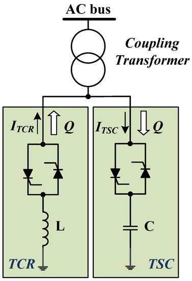 The SVC provides an excellent source of rapidly controllable reactive shunt compensation for dynamic voltage control through its utilization of high-speed thyristor switching/controlled reactive devices. In general, the concepts of TCRs and TSCs are used in SVCs. The TSC provides a “stepped” response, and the TCR provides a “smooth” or continuously variable susceptance. Figure 7 illustrates a TCR/TSC including the operating process concept.