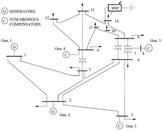 - Kodsi, S.K.M.; Claudio, C.A. Modeling and Simulation of IEEE 14 Bus System with Facts Controllers; Technical Report; University of Waterloo: Waterloo, ON, Canada, 2003. [Google Scholar]