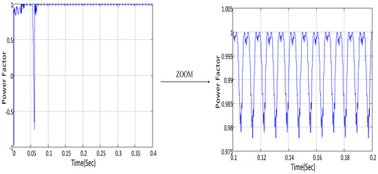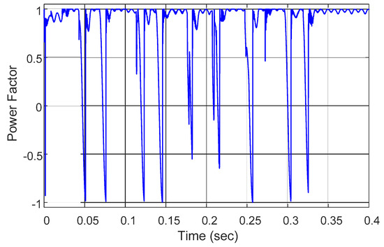 When using the proposed control scheme in a system when EVs are connected to power for charging, it will be possible for the power factor to be improved close to unity. Bad effects of unbalanced loads in the system are resolved, and the total efficiency of the system is increased. Figure 18 shows the power factor of the system with the proposed schemes.