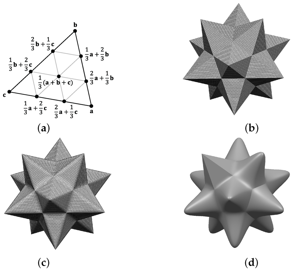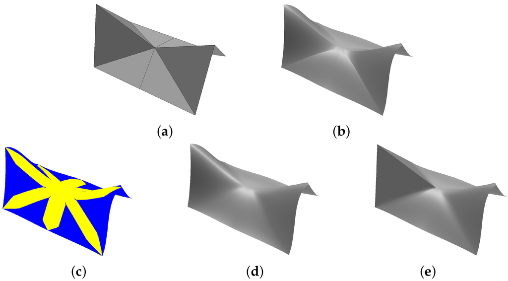 - Ying, L.; Zorin, D. A Simple Manifold-based Construction of Surfaces of Arbitrary Smoothness. ACM Trans. Graph. 2004, 23, 271–275. [Google Scholar] [CrossRef]
