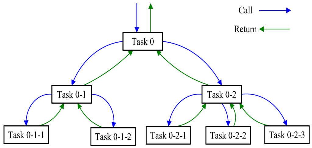In Fork/Join framework, if a task could be divided into some subtasks and the result could be obtained by combining these subtasks, then the task is fit to be solved with Fork/Join pattern as Figure 5. The task is dependent on the subtasks in a low level, so the task 0 cannot get the result until all the subtasks return. Other problems relating parallelism such as load balancing and synchronization could also be solved with the framework.