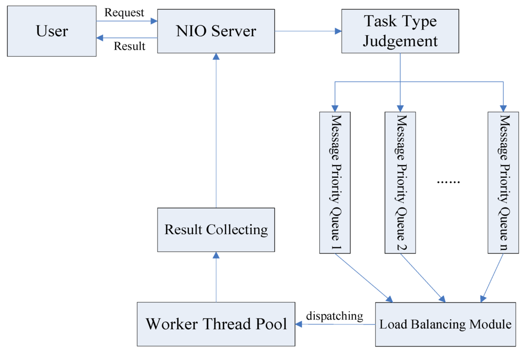 In order to solve these problems, a multi-core load balancing model based on the Java NIO (Java New I/O) framework is proposed, which utilizes both the high-performance non-blocking I/O in Java NIO framework and parallel processing ability of multi-core processors. In JDK1.4 API, Java NIO was designed to provide access to the low-level operations of modern operating systems and the intent is to facilitate an implementation that can directly use the most efficient operations of the underlying platform [17,18], which provides buffer-based multi-channel non-blocking I/O methods in Java language.