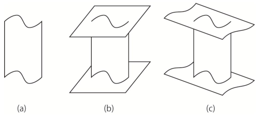 Figure 2, we applied the above method twice to the upper curve and the lower curve, resulting in the closed cylinder. This is the mathematical trick to generate ambiguous cylinder illusion.