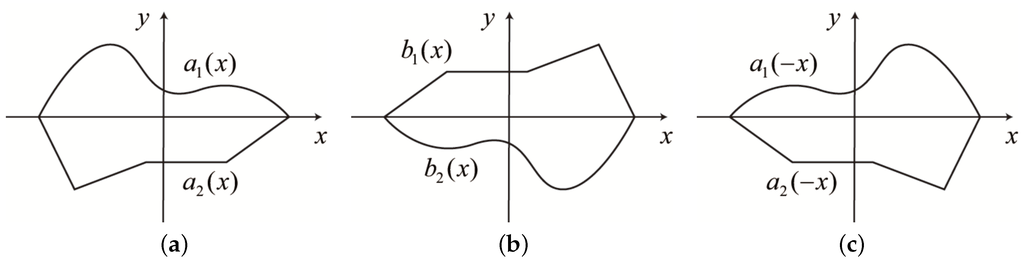 Let and be two continuous functions defined in such that and . Hence and altogether form a closed curve on the plane. Similarly, let and be two continuous functions defined in such that and . Hence and constitute another closed curve on the plane. We want to construct a closed space curve that appears to be the closed curve composed of and when it is seen in the view direction , and that appears to be the closed curve composed of and when it is seen in the view direction , and it generates anomalous symmetry when we place a mirror parallel to the plane.