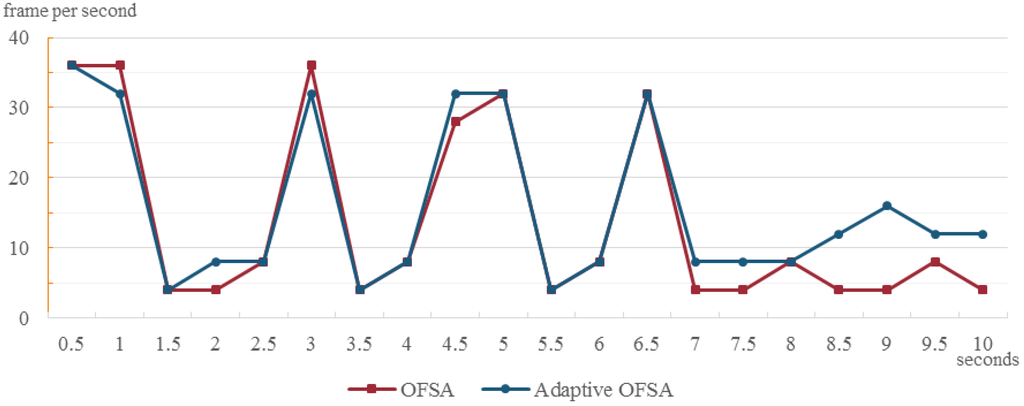Comparison of the frame-rate between OFSA and adaptive OFSA.