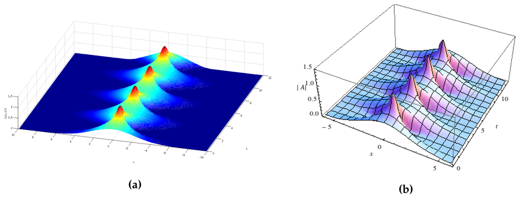 where using , and 2, given by Equations (12) and (15), we get the solutions. It is important to notice that if we consider in Equation (21) we obtain standard NLS models.