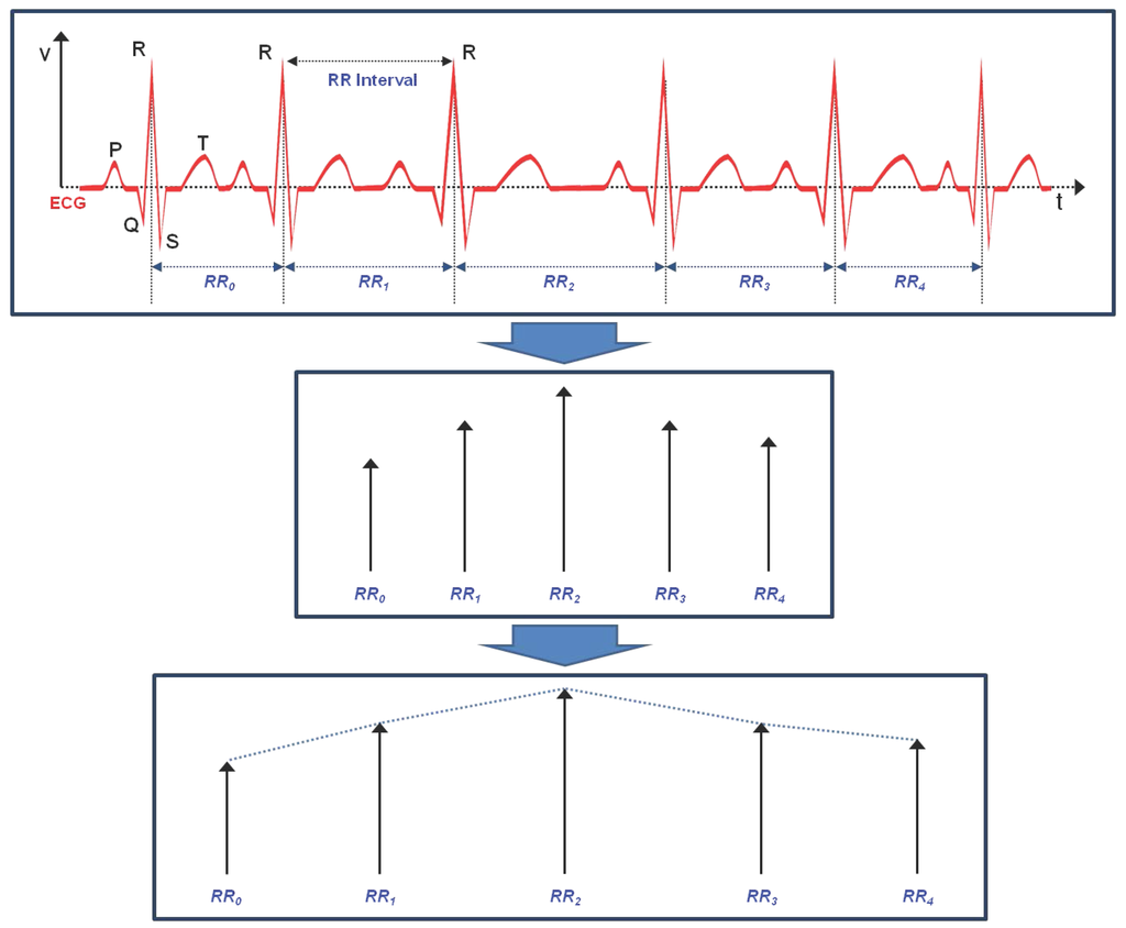 RR interval extraction process in electrocardiogram (ECG) signals.
