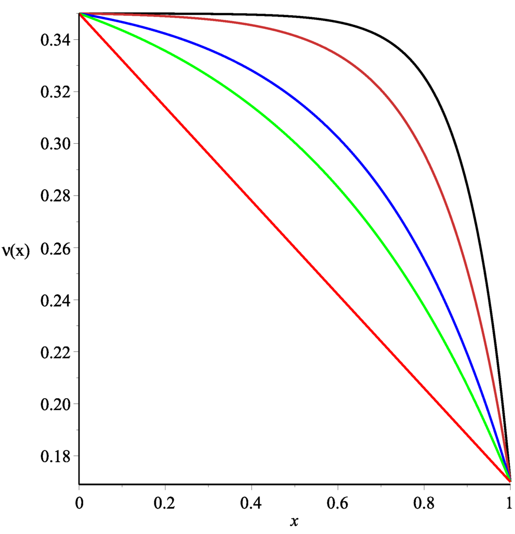 in order to obtain and for and respectively. Obviously Formula (37) produces a wide range of profiles depending on values of the positive parameter α (see Figure 2).
