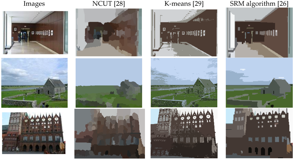 We further compare the results of image segmentation with the benchmark segmentation techniques, such as Normalized cuts (NCUT) [28], and K-means [29], as shown in Figure 2. The SRM segmentation that yields the best pixel-wise mean accuracy would be chosen.