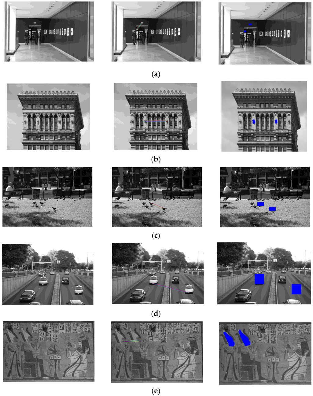 where (b × b) << (M × N), and K = 12 which is the total number of divided sectors in the image region. Therefore, the computational complexity of the proposed algorithm mainly depends on the image size (M × N) and the total number of detected image regions L.