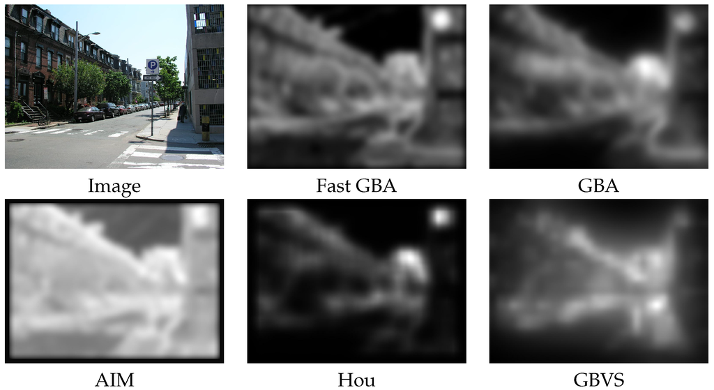 - Harel, J.; Koch, C.; Perona, P. Graph-Based Visual Saliency. In Proceedings of Neural Information Processing Systems (NIPS); MIT Press: Cambridge, MA, USA, 2006; pp. 545–552. [Google Scholar]