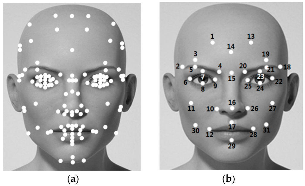 - Hong, S.; Byun, H. Facial expression recognition using eigen-points. In Proceedings of the Korean Conference of the Korea Institute of Information Scientists and Engineers, Daejeon, Korea, 23–24 April 2004; Volume 3, pp. 817–819.