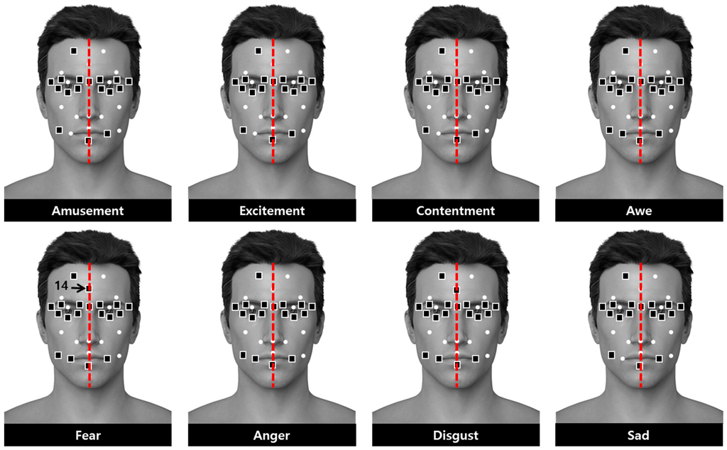 Because facial movements are different between individuals, we first measured a case of neutral emotions; this allowed us to minimize the individual variation by removing the neutral emotion at the elicited specific emotion.