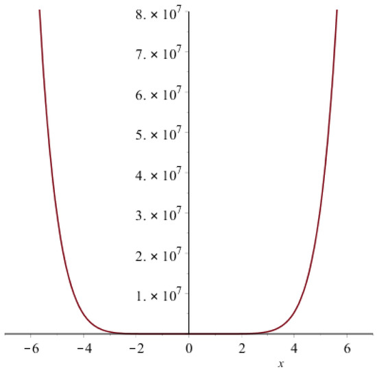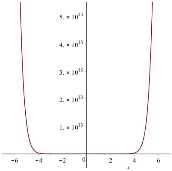 Figure 5. Graph of the second Zagreb polynomial of . - By definition, the forgotten polynomial is:The graph of the forgotten polynomial of is given in Figure 6 below,