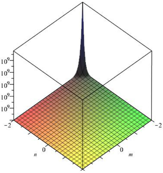 Figure 8. 3D plot for the first multiple-Zagreb index. - By the definition of the second multiple Zagreb index,3D plot for the second multiple-Zagreb index of generalized prism is given in Figure 9.