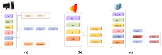 Metadata structure of the DIaaS: (a) Desktop metadata; (b) Computing service metadata and (c) storage service metadata.