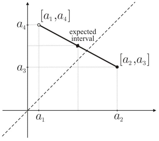 The expected interval of a fuzzy number is given by Dubois and Prade [27], Grzegorzewski [28], and Heilpern [29]. For a trapezoidal fuzzy number , the expected interval is