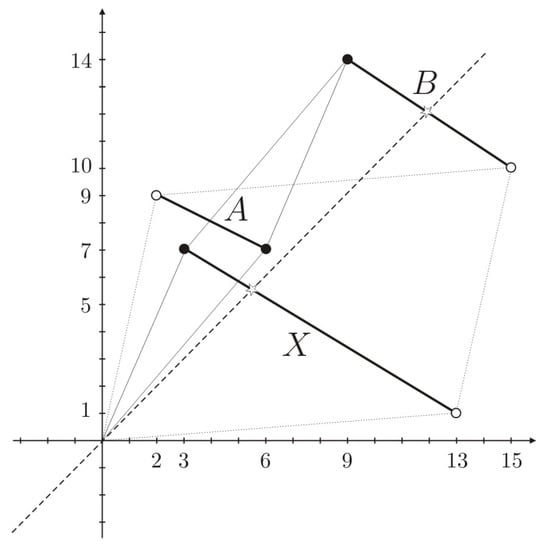 Let us take the MITFN and . Both A and B are proper trapezoidal fuzzy numbers, that is, trapezoidal fuzzy numbers in the classical sense. The solution of the equation