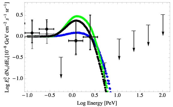 - Ahlers, M.; Murase, K. Probing the galactic origin of the IceCube excess with gamma-rays. Phys. Rev. D 2014, 90, 023010. [Google Scholar] [CrossRef]