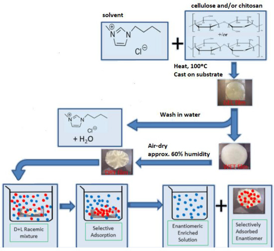 Representative example of inherent chiral membranes containing cellulose and/or chitosan (adapted from Ref. [81]).