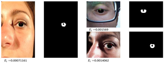 In the next experiments, we compared the error of the iris segmentation by our proposed method with that by previous methods in terms of E1 of Equation (7). As shown in these results of Table 4, our proposed method outperforms the previous methods in iris segmentation error.